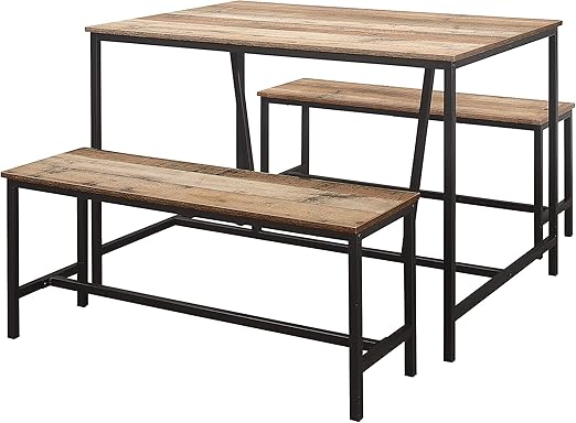 The zinus juliet espresso wood dining table and benches, 3 piece set, will add a classic charm to your kitchen. We have versatile dining sets with double leaf extensions perfect for guests during the holiday get togethers. Benzara, woodland imprts, the urban port. Our handmade farmhouse dining table set with matching rustic bench. Pack contents one dining table, two benches.